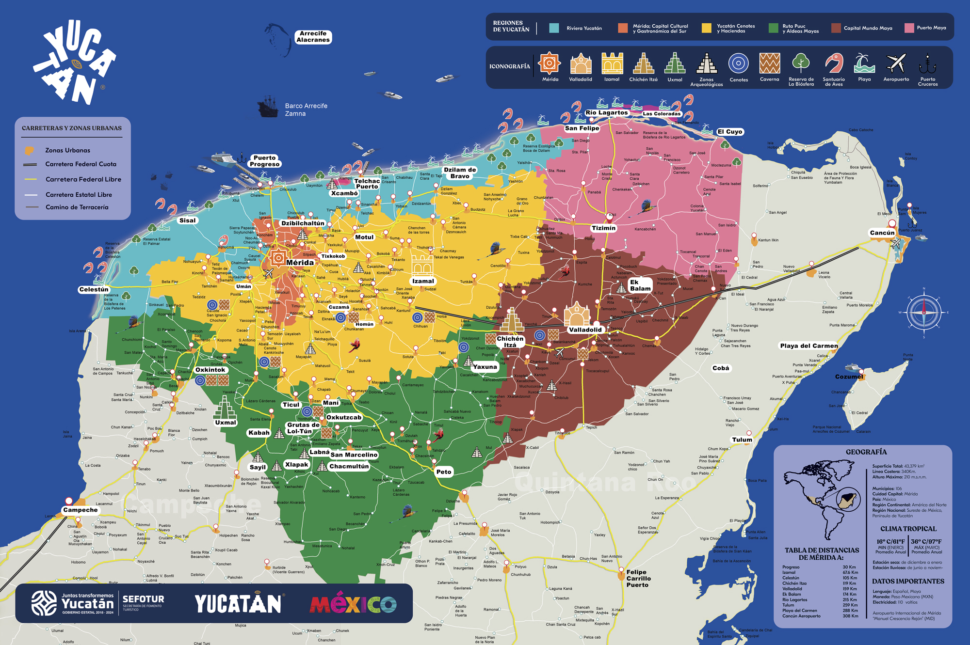 La región de Yucatán tiene en su territorio algunos de los lugares más visitados de México, imprescindibles a todas luces como Chichén Itzá, Mérida, la ruta de los cenotes, o los yacimientos arqueológicos de Dzibilchaltún, Mayapán, Ek Balam (El Jaguar Negro), Labná o Uxmal.